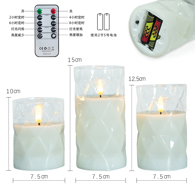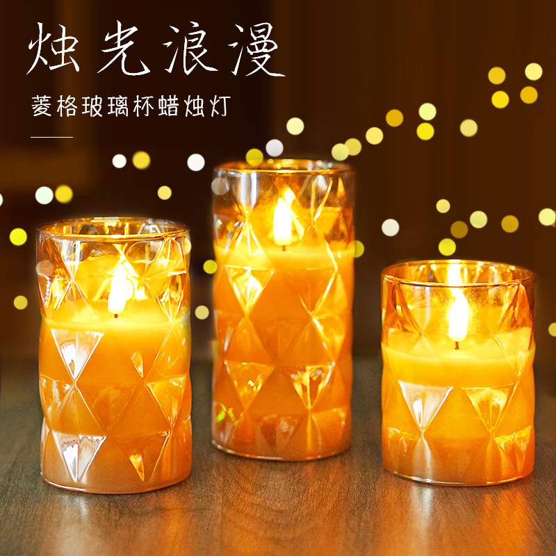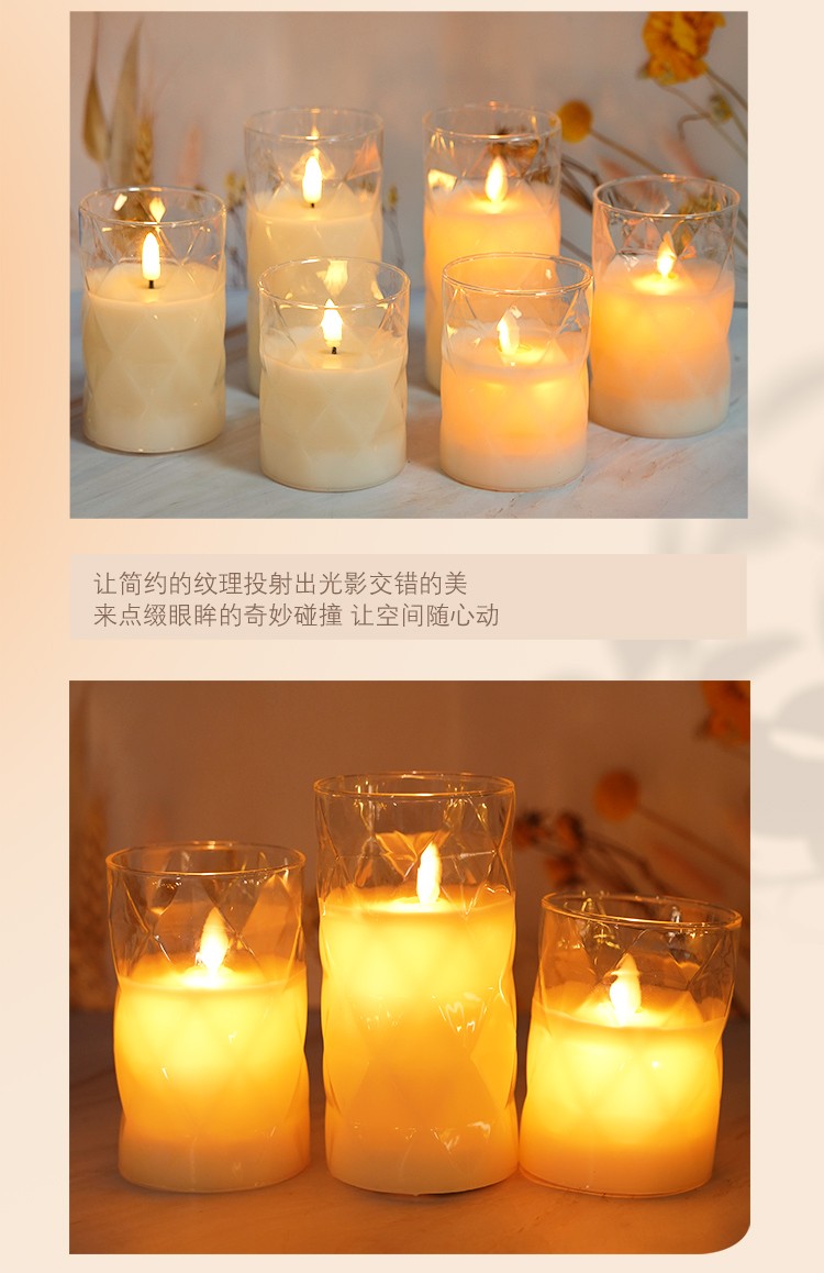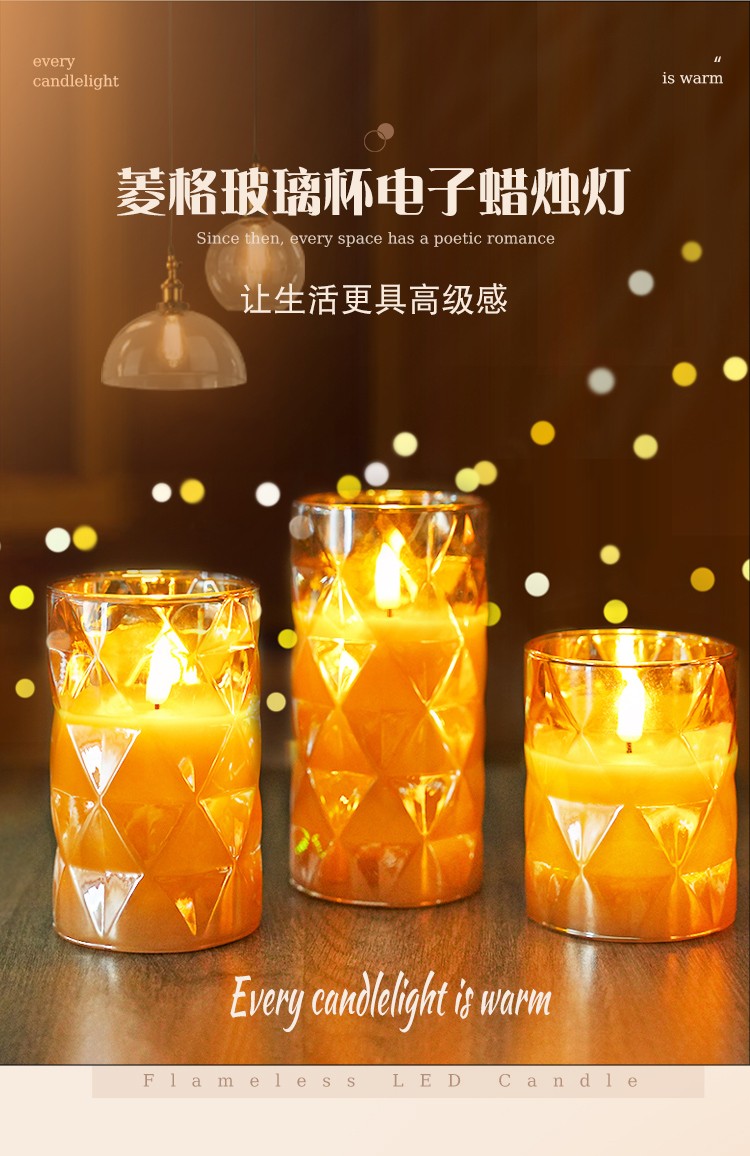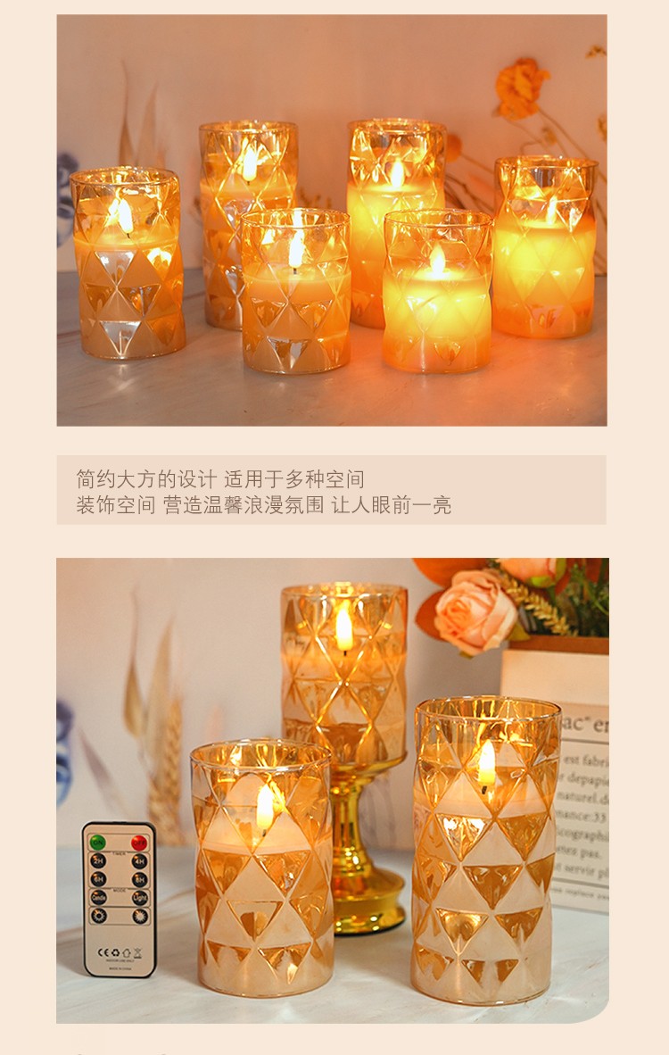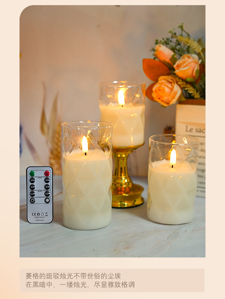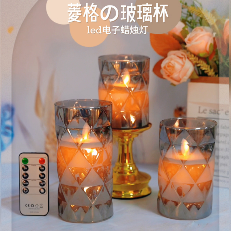 产品名称:菱格玻璃led电子蜡烛灯 10键遥控氛围小夜灯装饰圣诞万圣节路引灯