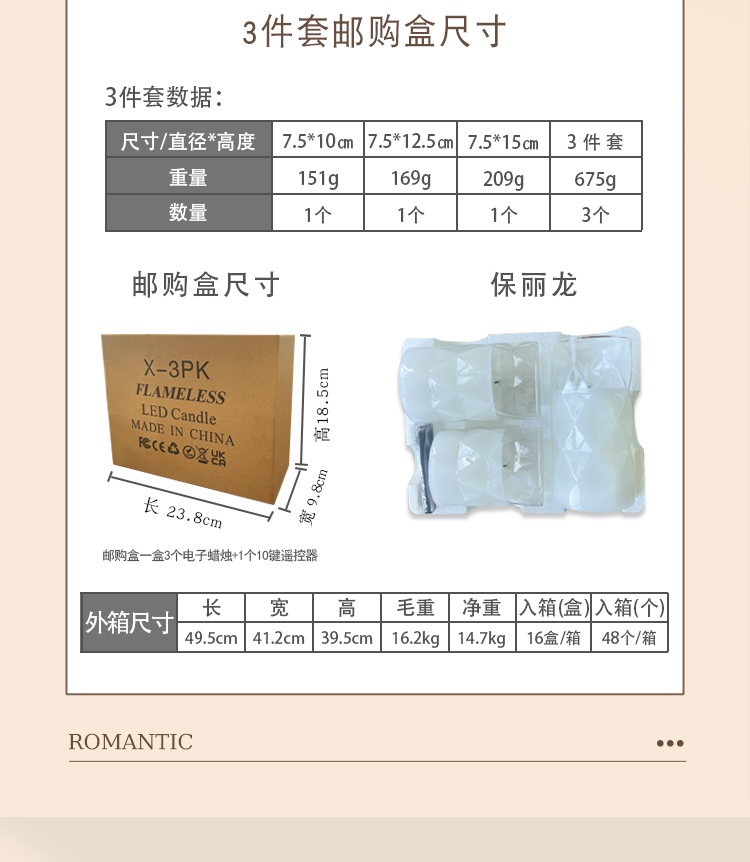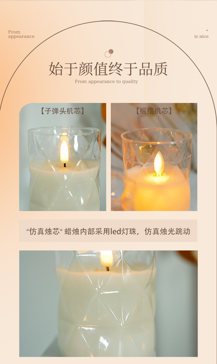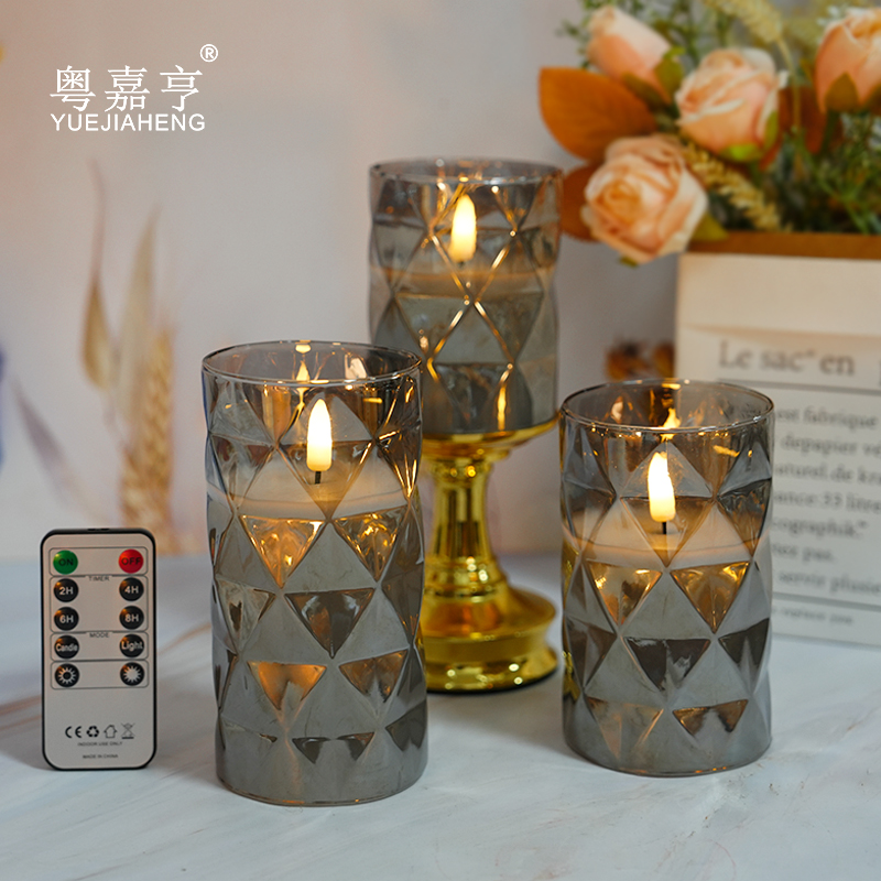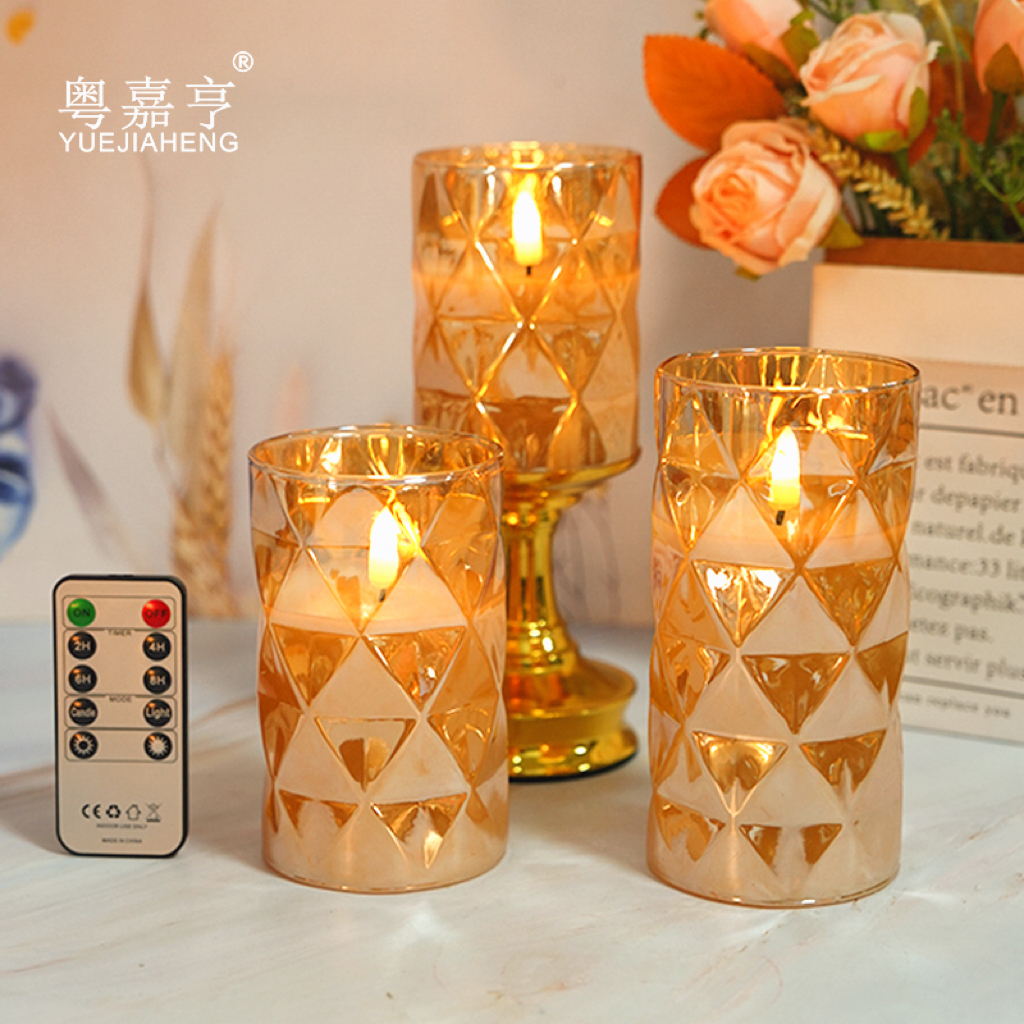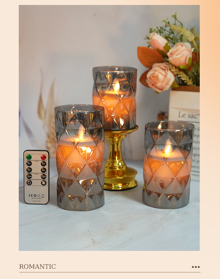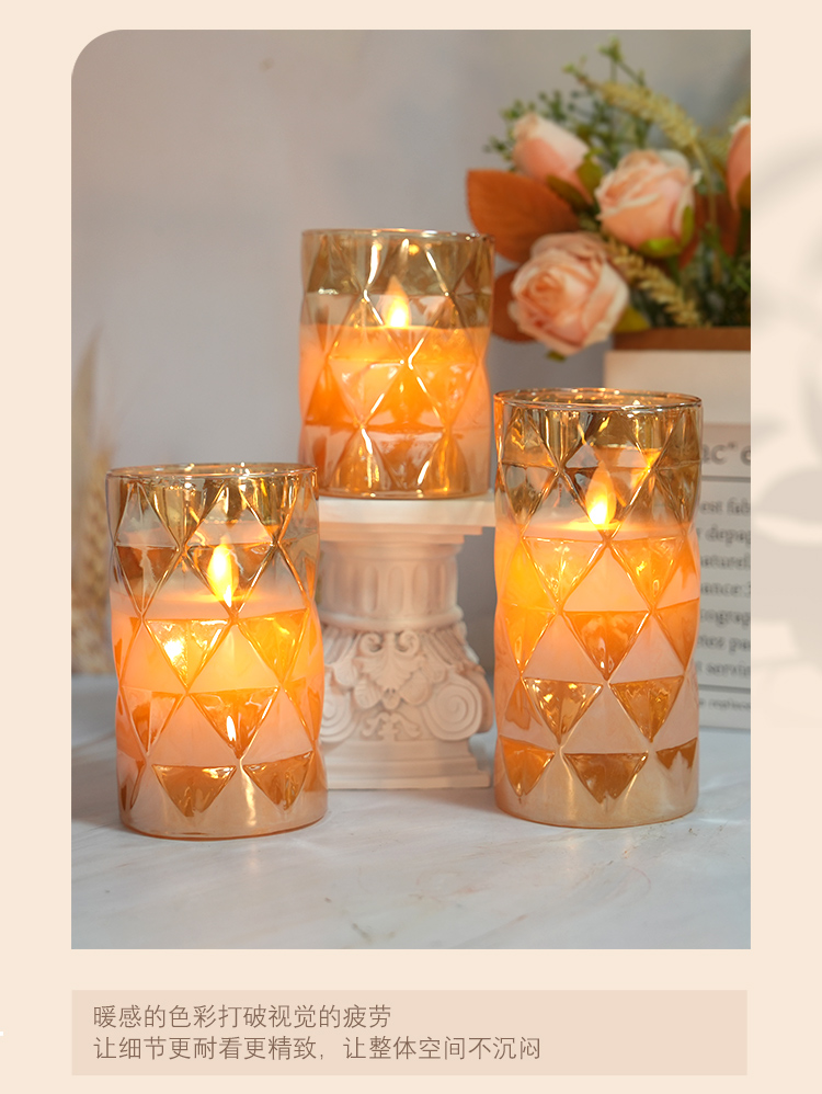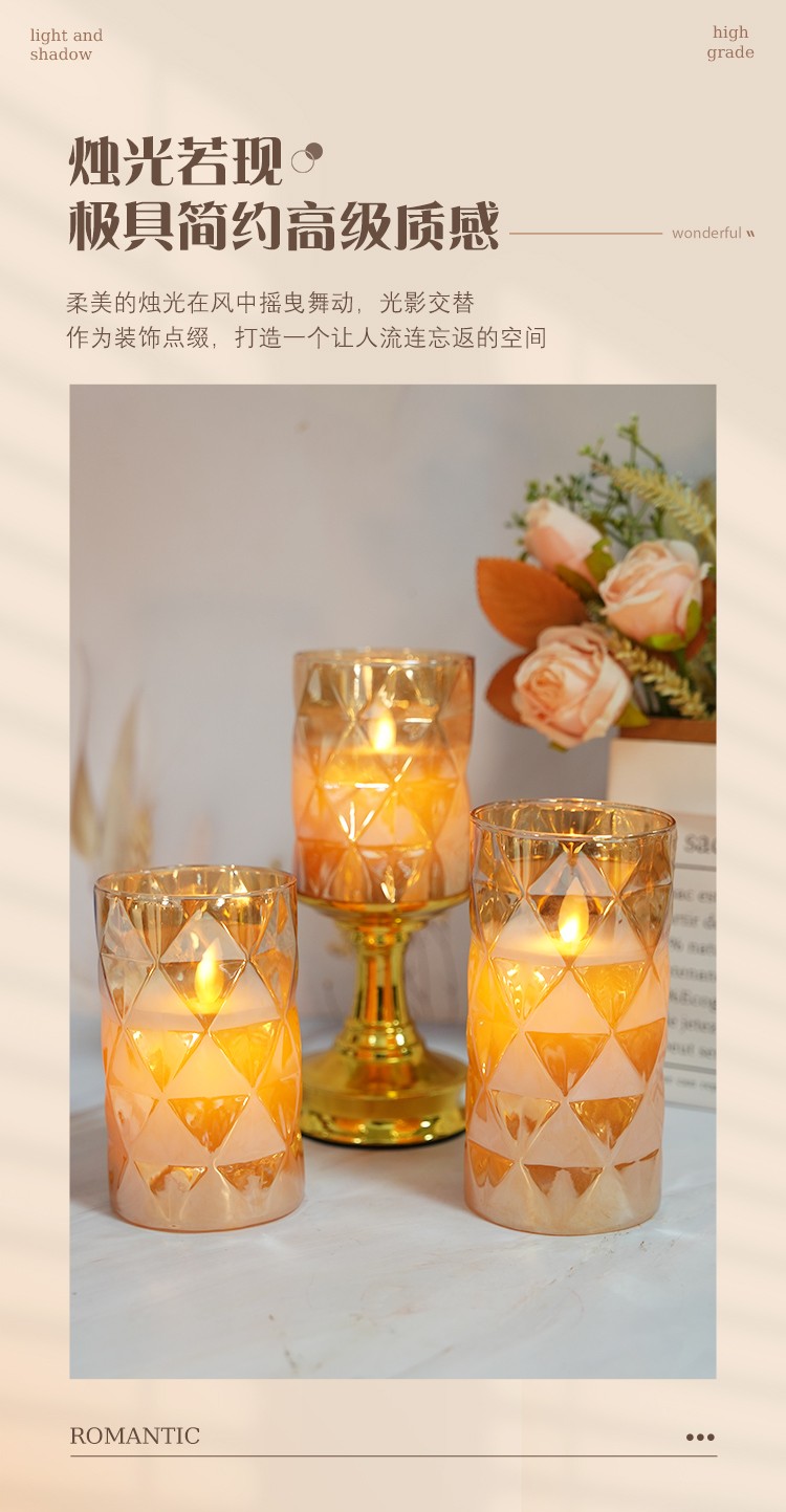 产品名称:菱格玻璃led电子蜡烛灯 10键遥控氛围小夜灯装饰圣诞万圣节路引灯