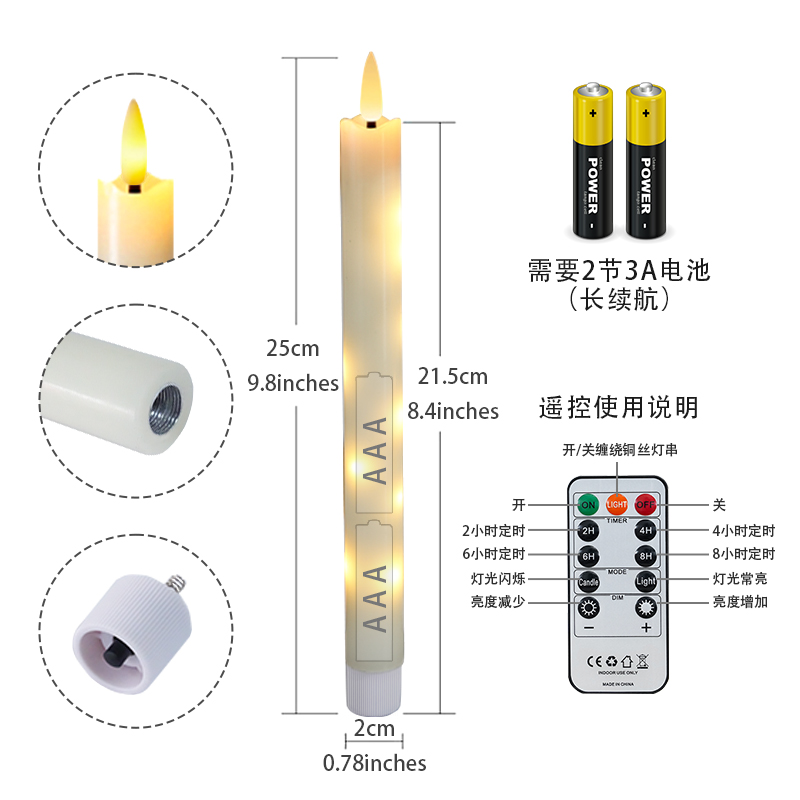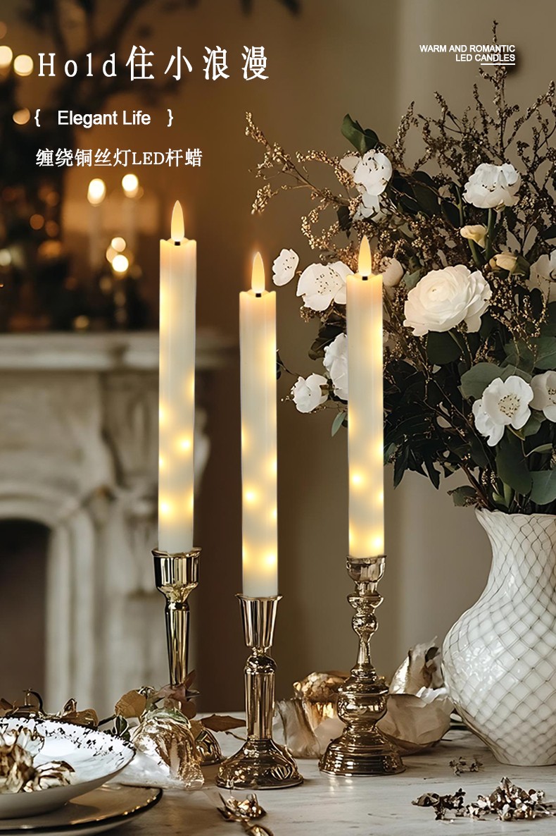 铜丝灯长杆蜡烛11遥控电子蜡烛灯,长杆蜡,缠绕灯串