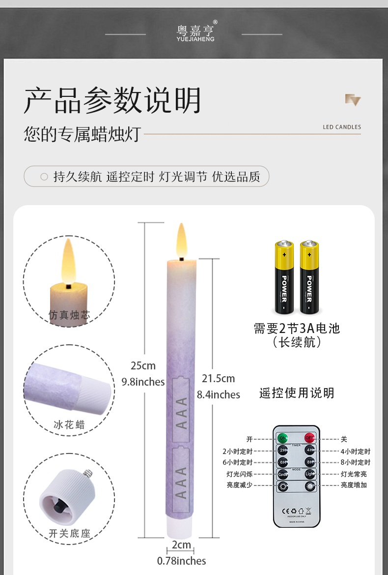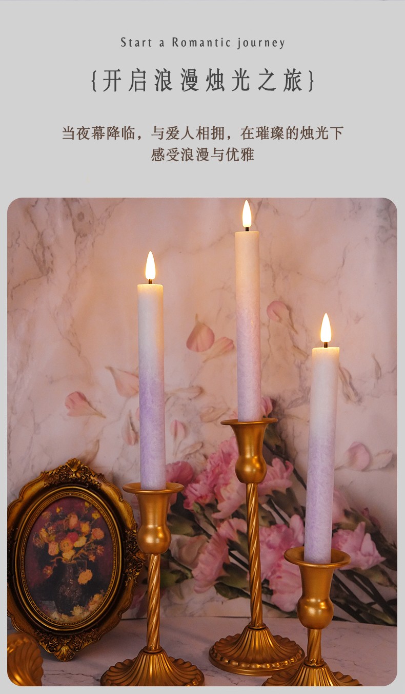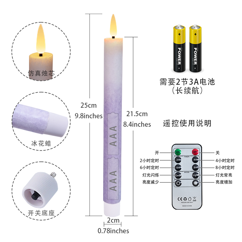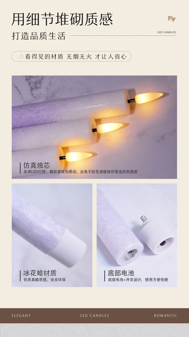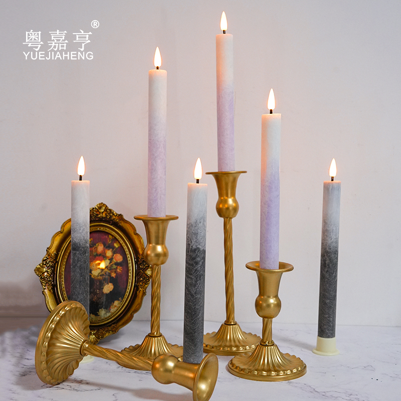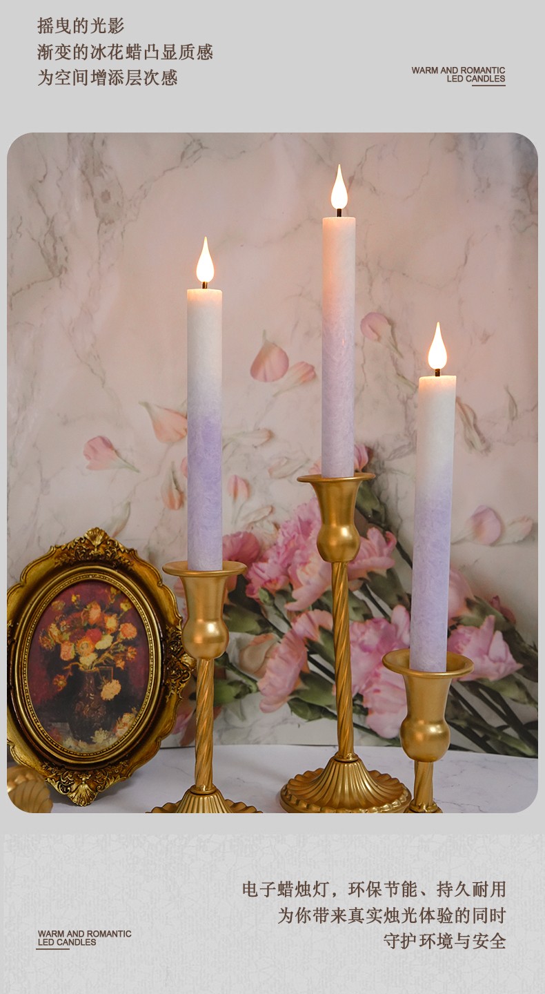 双色冰花渐变杆蜡石蜡 led电子蜡烛灯,莫兰迪 神秘灰+白 ,莫兰迪 薰衣草+白