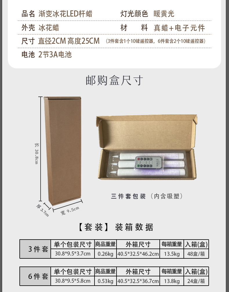 产品名称:北欧风双色冰花杆蜡石蜡 led电子蜡烛灯长杆蜡电杆蜡圣诞节万圣节