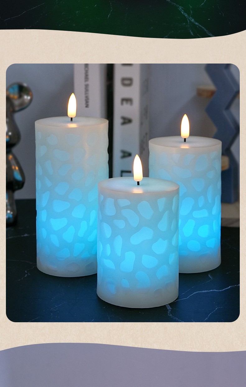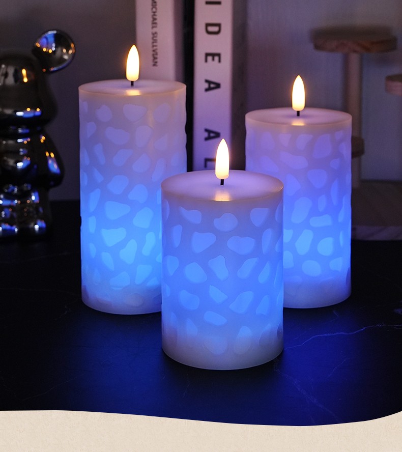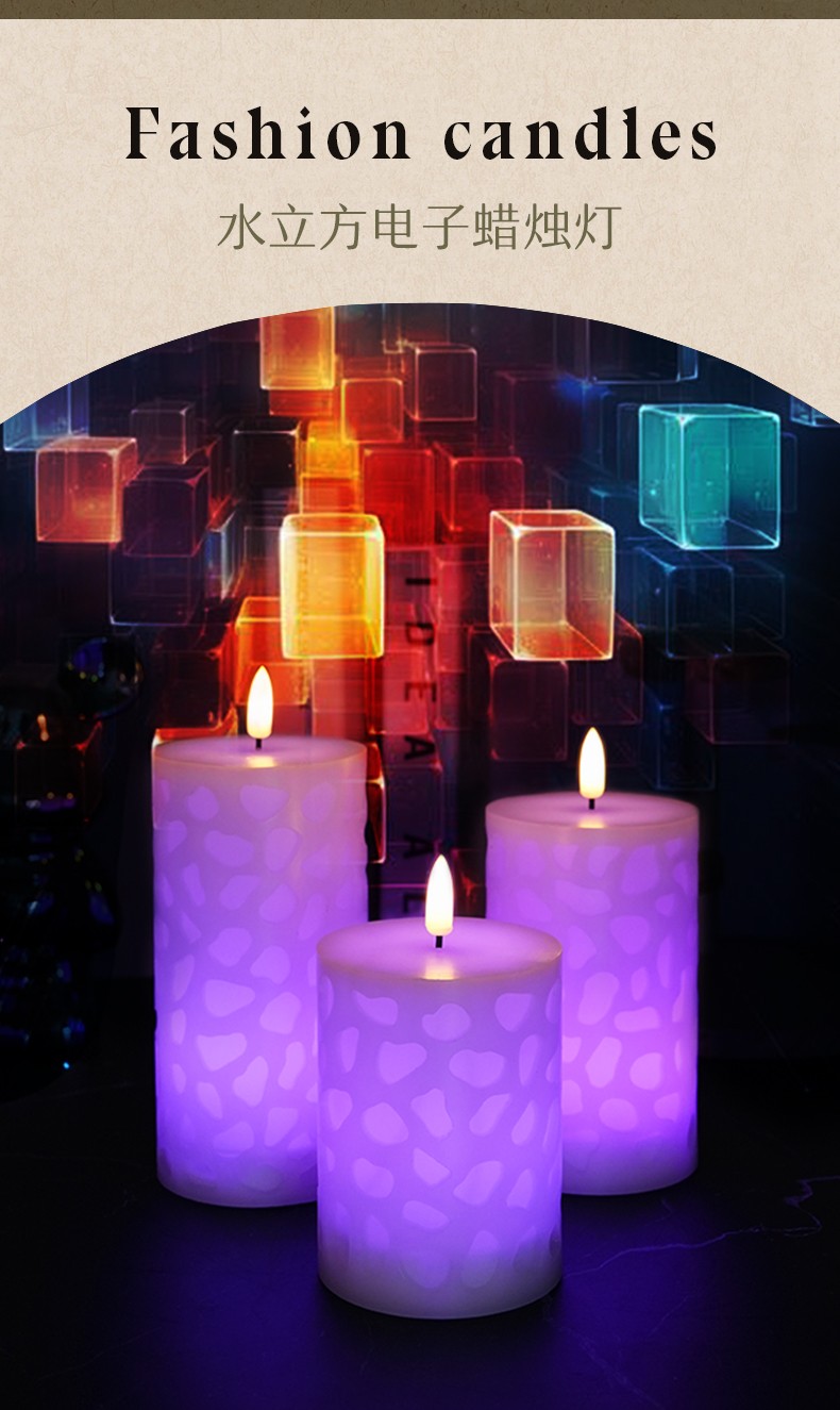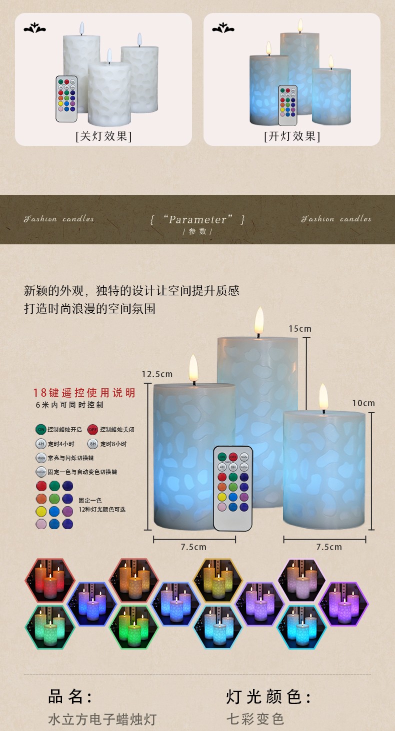水立方浮雕 18键遥控LED子弹头电子蜡烛灯,三件套、石蜡材质