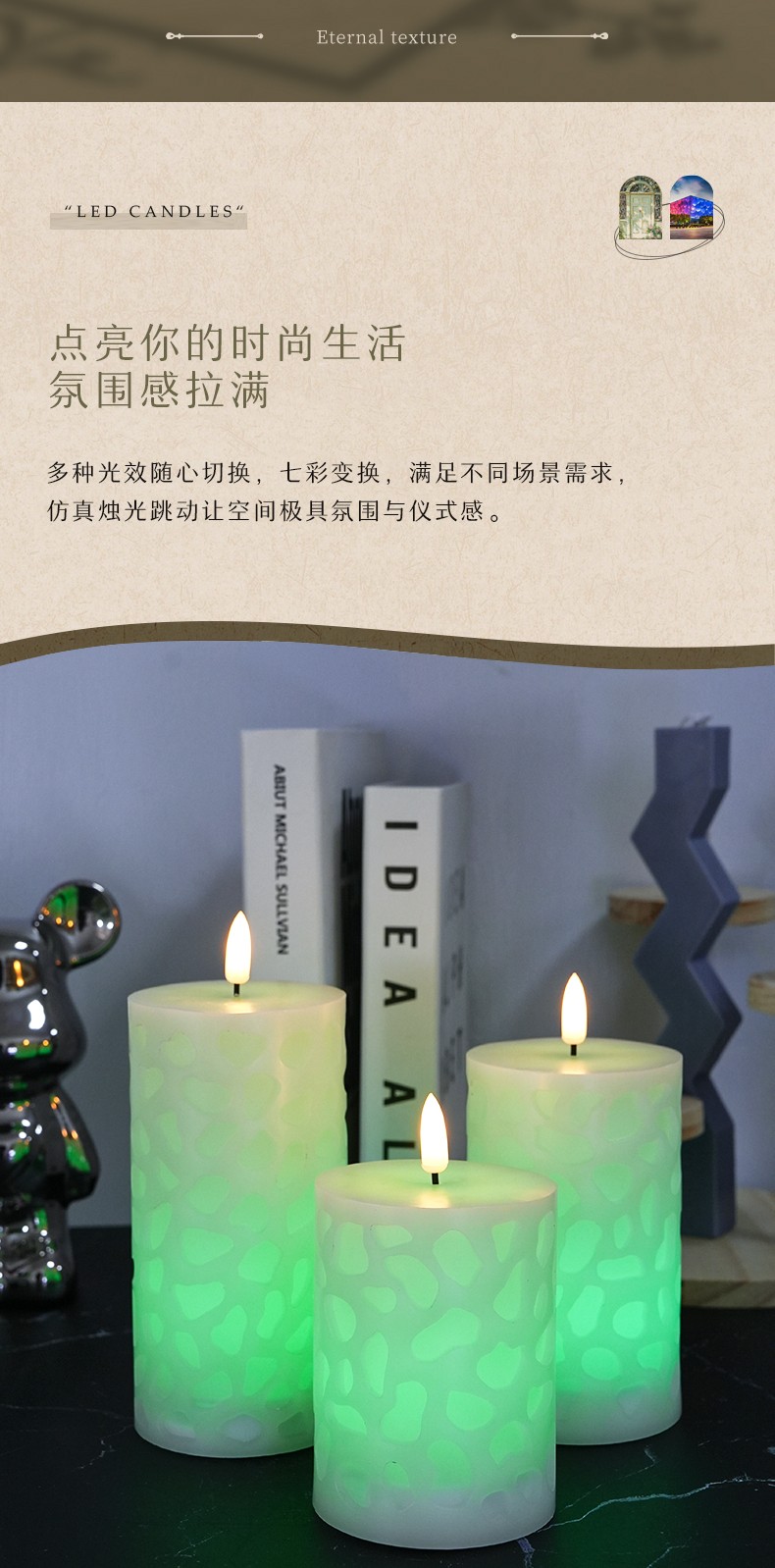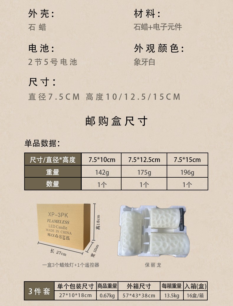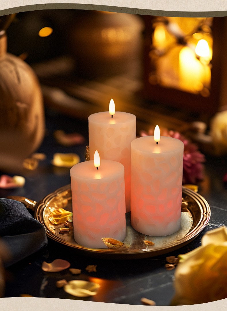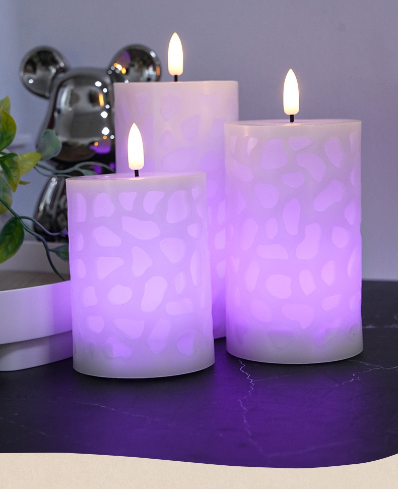 水立方浮雕 18键遥控LED子弹头电子蜡烛灯,三件套、石蜡材质