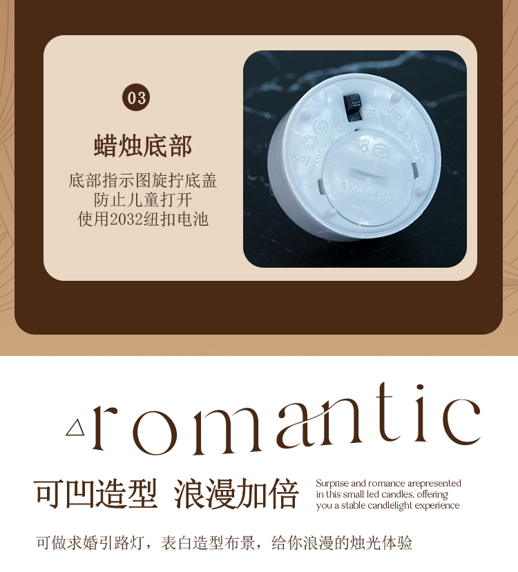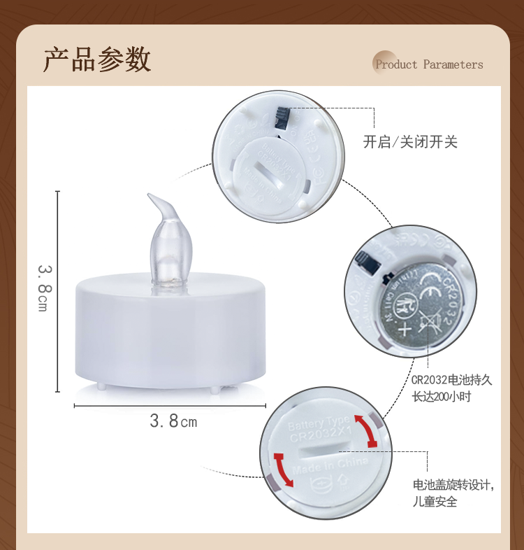 儿童锁尖头小茶蜡灯CR2032纽扣电池茶蜡灯