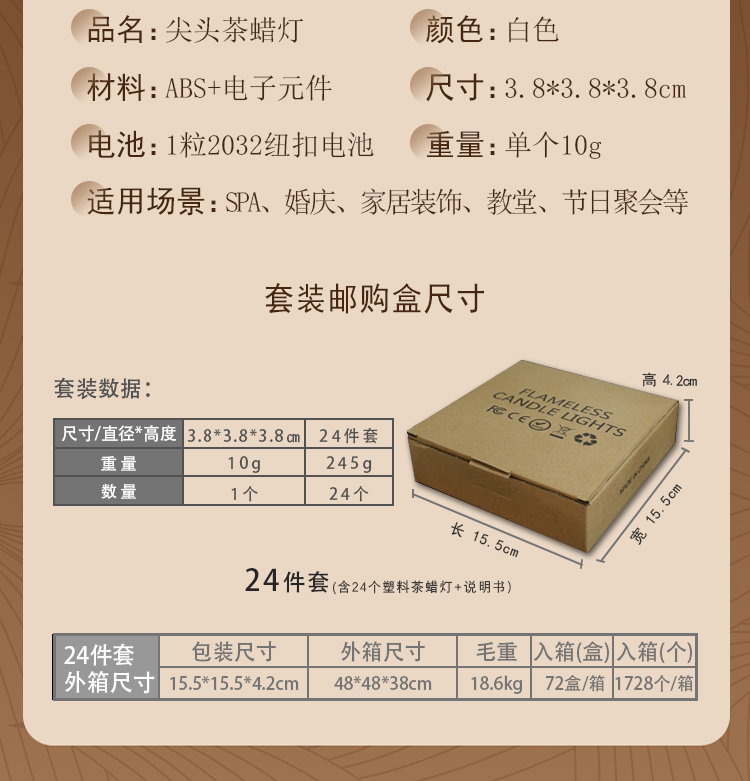产品名称:茶蜡灯2032电池 led电子蜡烛灯创意婚礼生日婚庆蜡烛场地布置道具