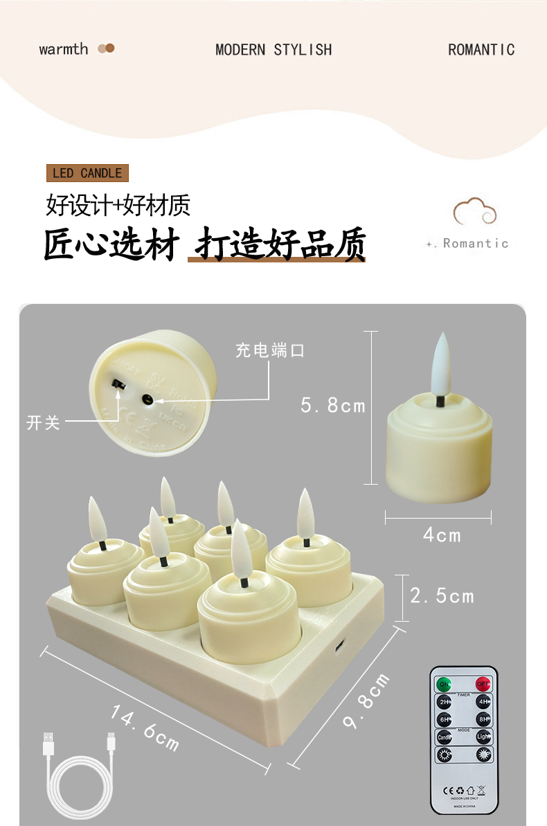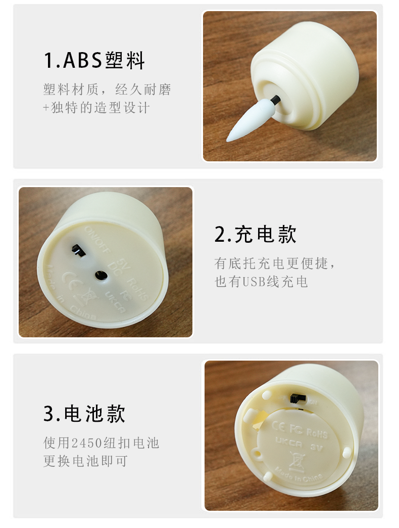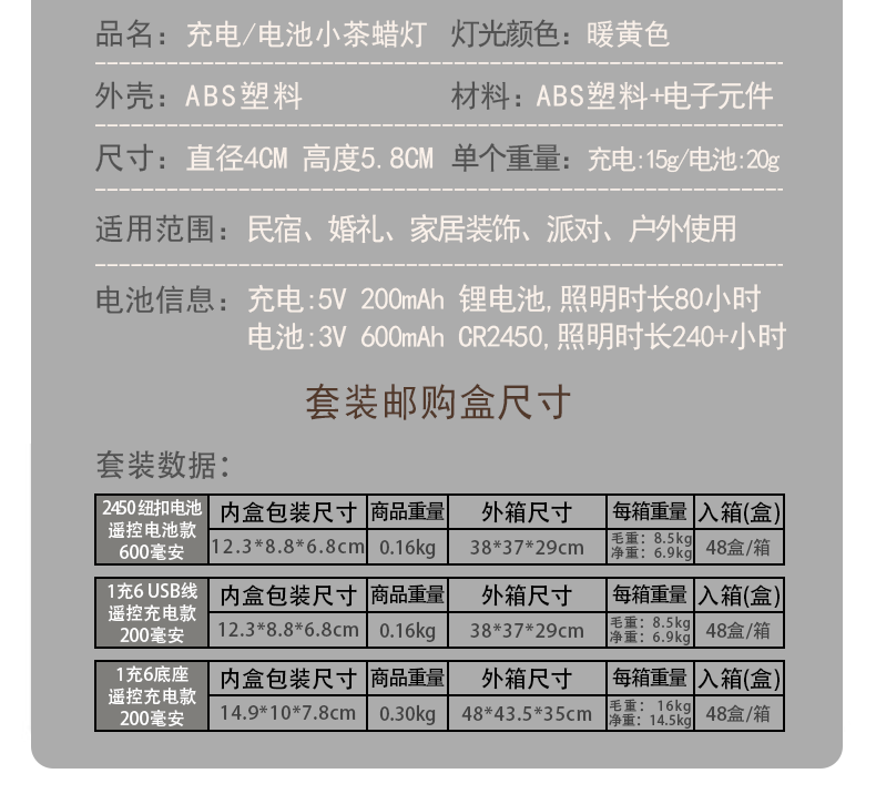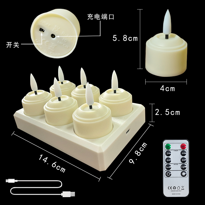 产品名称:充电茶蜡灯10键遥控使用80小时装饰灯酒吧餐厅小茶蜡万圣节圣诞节