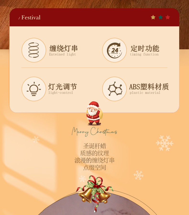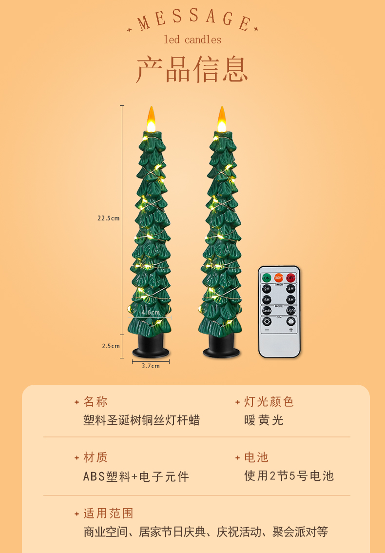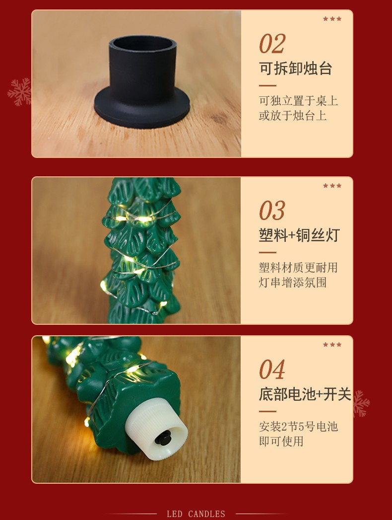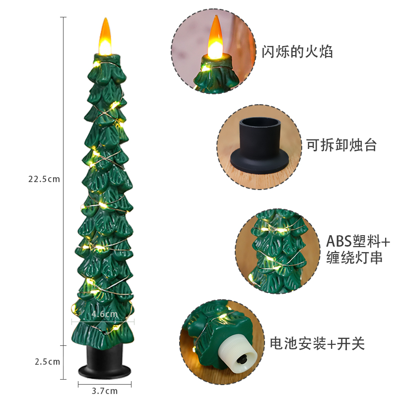 产品名称:塑料缠绕铜丝灯圣诞树杆蜡圣诞节氛围装饰led电子蜡烛灯圣诞万圣节日装饰