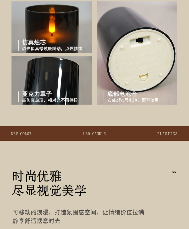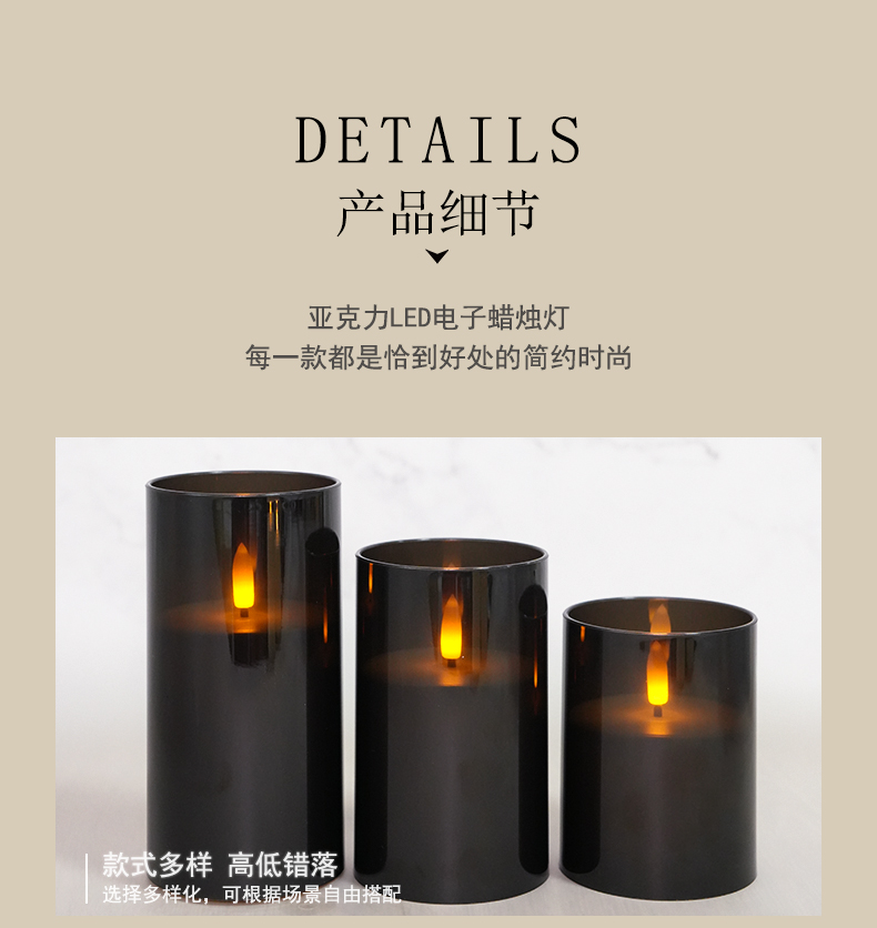 魔法黑系列直径7.5亚克力电子蜡烛灯