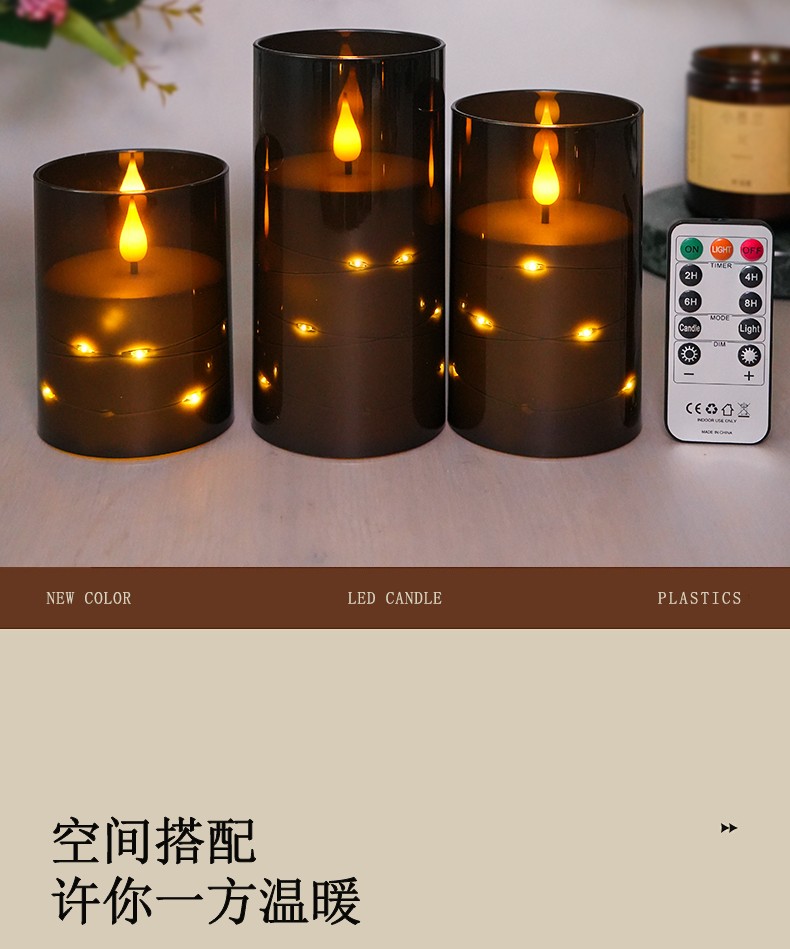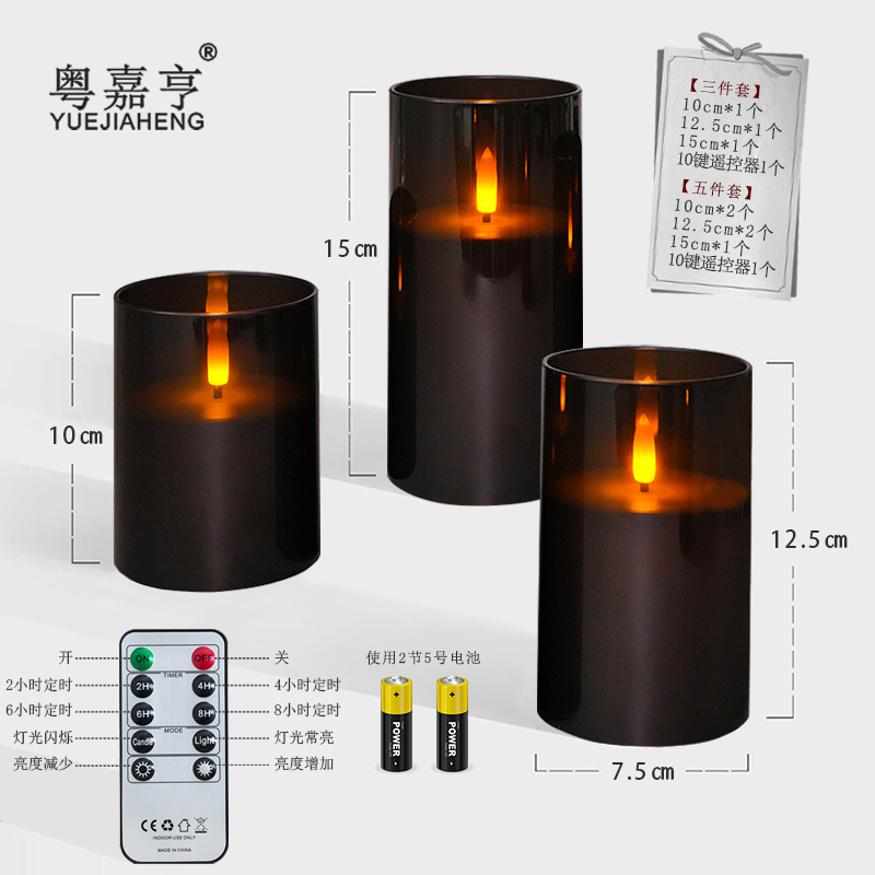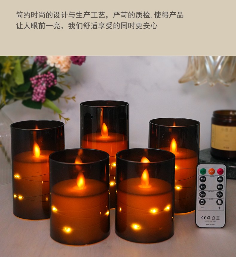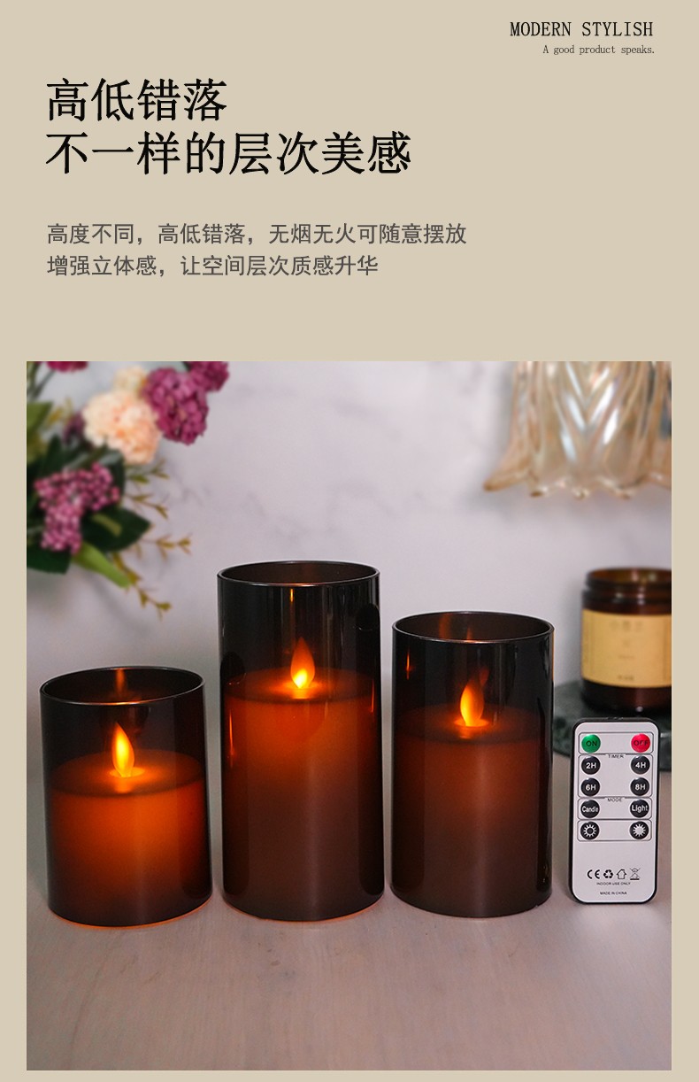 产品名称:跨境遥控LED电子蜡烛灯仿真魔法黑亚克力圣诞节生日 婚庆气氛布置