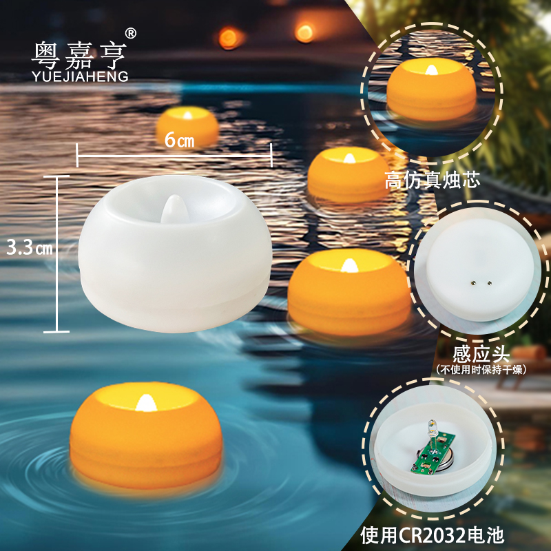 产品名称:漂浮蜡烛直径6cm led水浮蜡烛跨境热卖亚马逊 婚礼浪漫家居泳池装饰灯