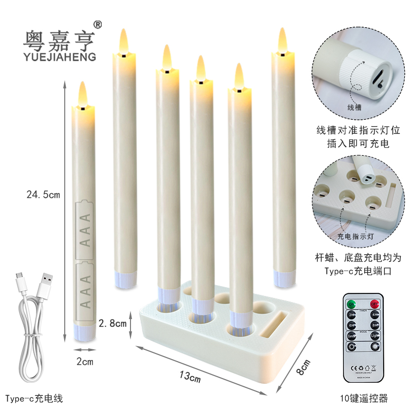 带底座充电长杆蜡石蜡led电子蜡烛灯