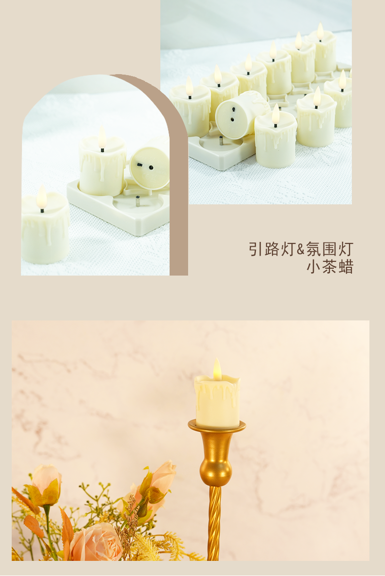 产品名称:跨境货源茶蜡充电ed电子蜡烛套装USB线 仿真火焰流泪款茶蜡灯婚礼