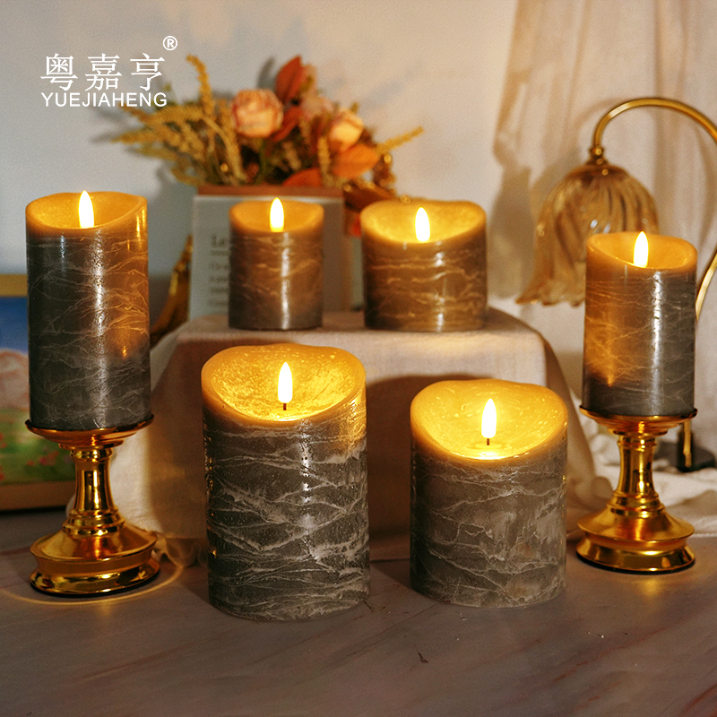 条纹柱蜡LED电子蜡烛灯水滴头蜡烛灯仿真火焰求婚表白圣诞蜡烛灯