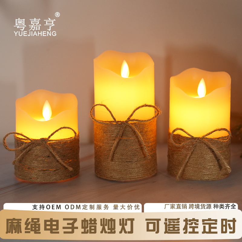 亚马逊热卖麻绳子弹头10键遥控 led电子蜡烛无烟蜡烛灯仿真装饰灯