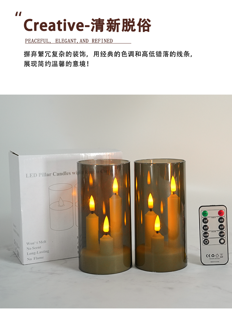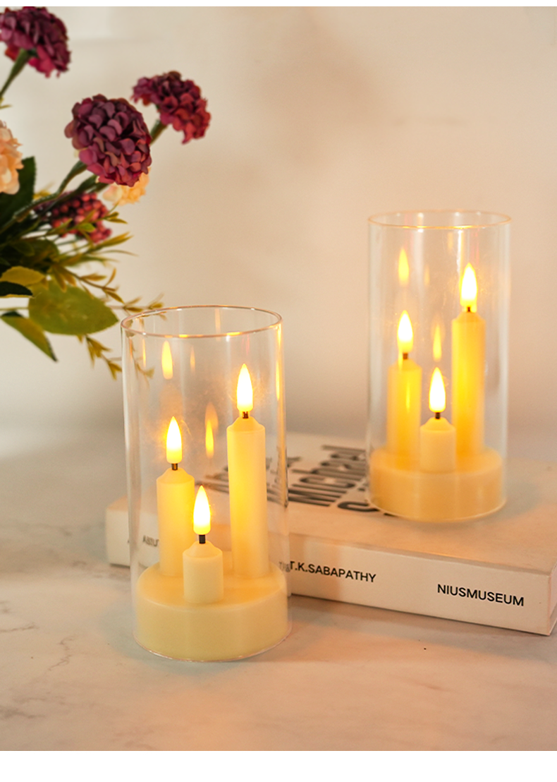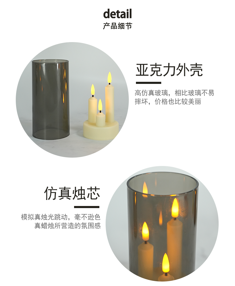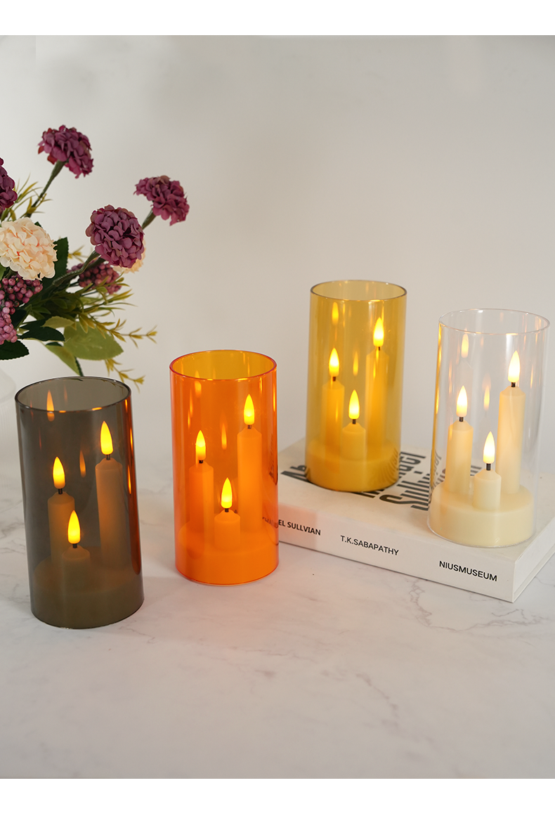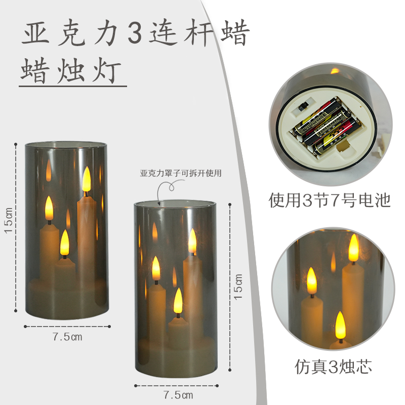 亚克力3头led电子蜡烛杆蜡灯,亚马逊套装