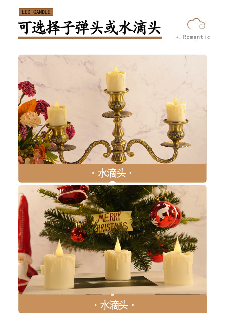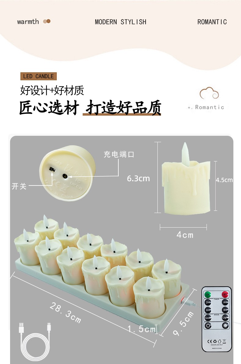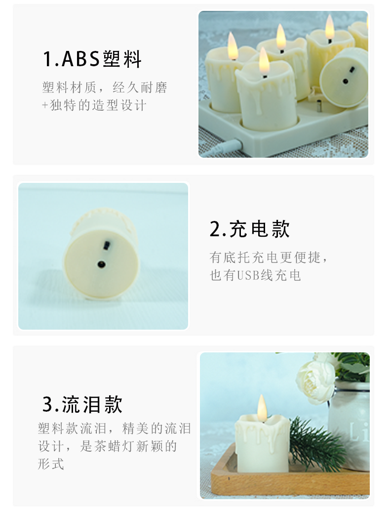 产品名称:跨境货源茶蜡充电ed电子蜡烛套装USB线 仿真火焰流泪款茶蜡灯婚礼